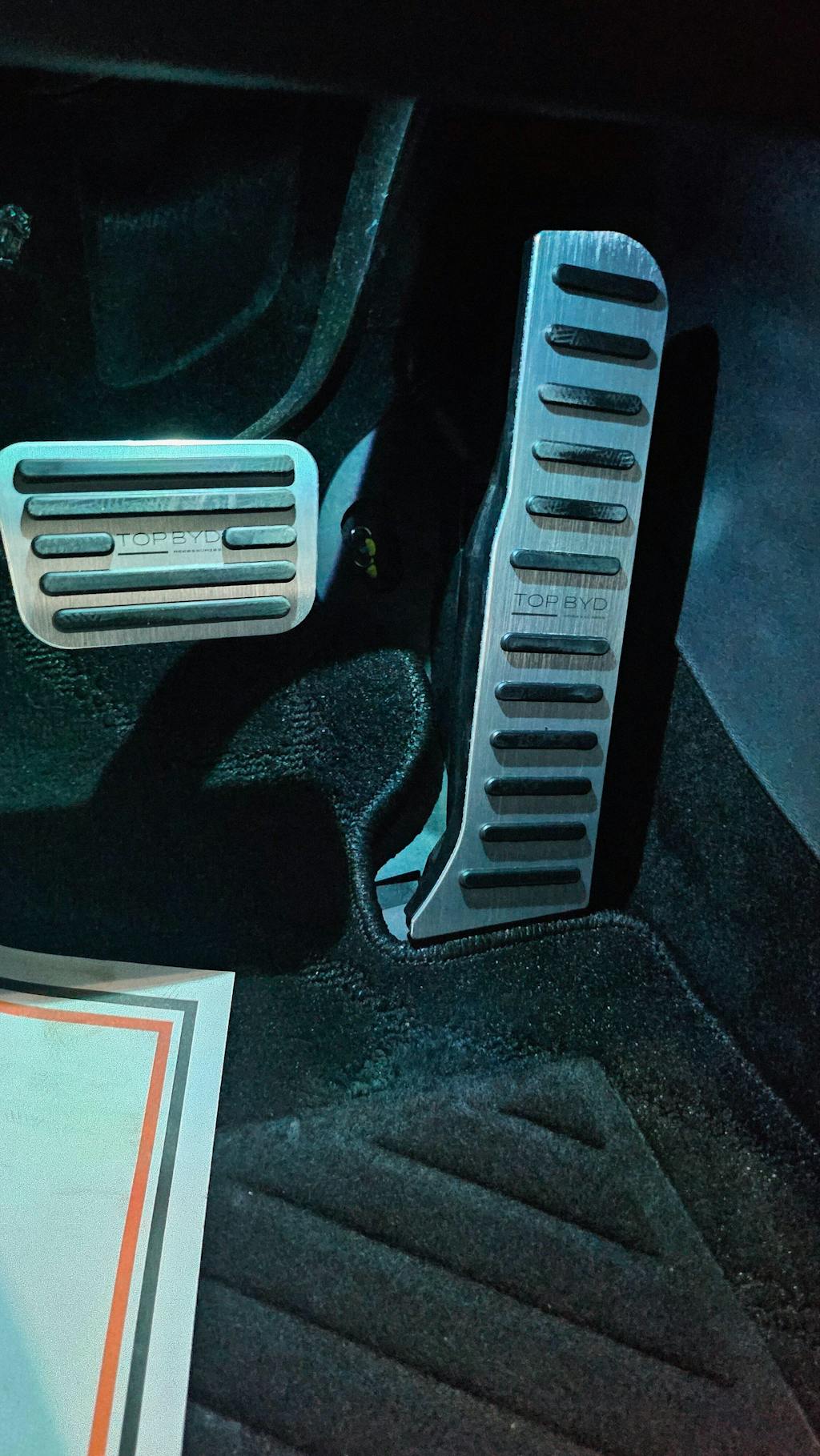 TOP BYD Foot Rest Dead Pedal Covers have been designed and manufactured specifically your BYD Seal. These covers have a brushed metal look placed on top of the vehicle's underlying black ribbed strips — conforming to the interior design language of your BYD. They bring forth the brushed aluminum look that accents BYD's vehicle interior into the lower driver compartment, providing a performance look that will make you smile every time you open the driver side door.