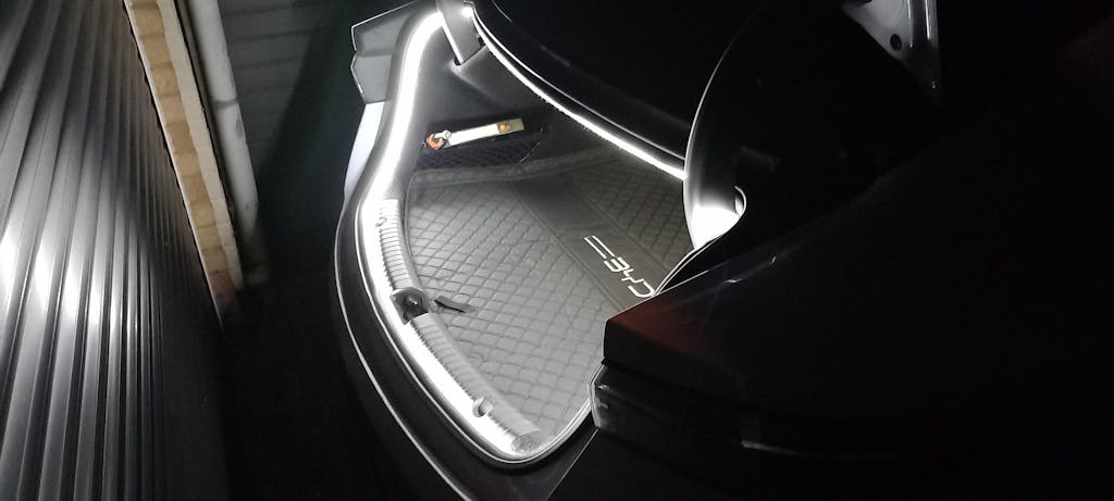 Waterproof LED Strip for BYD trunk. Multi-colors for your choosing, white, warm white. Just connects with the power cable of the trunk button.