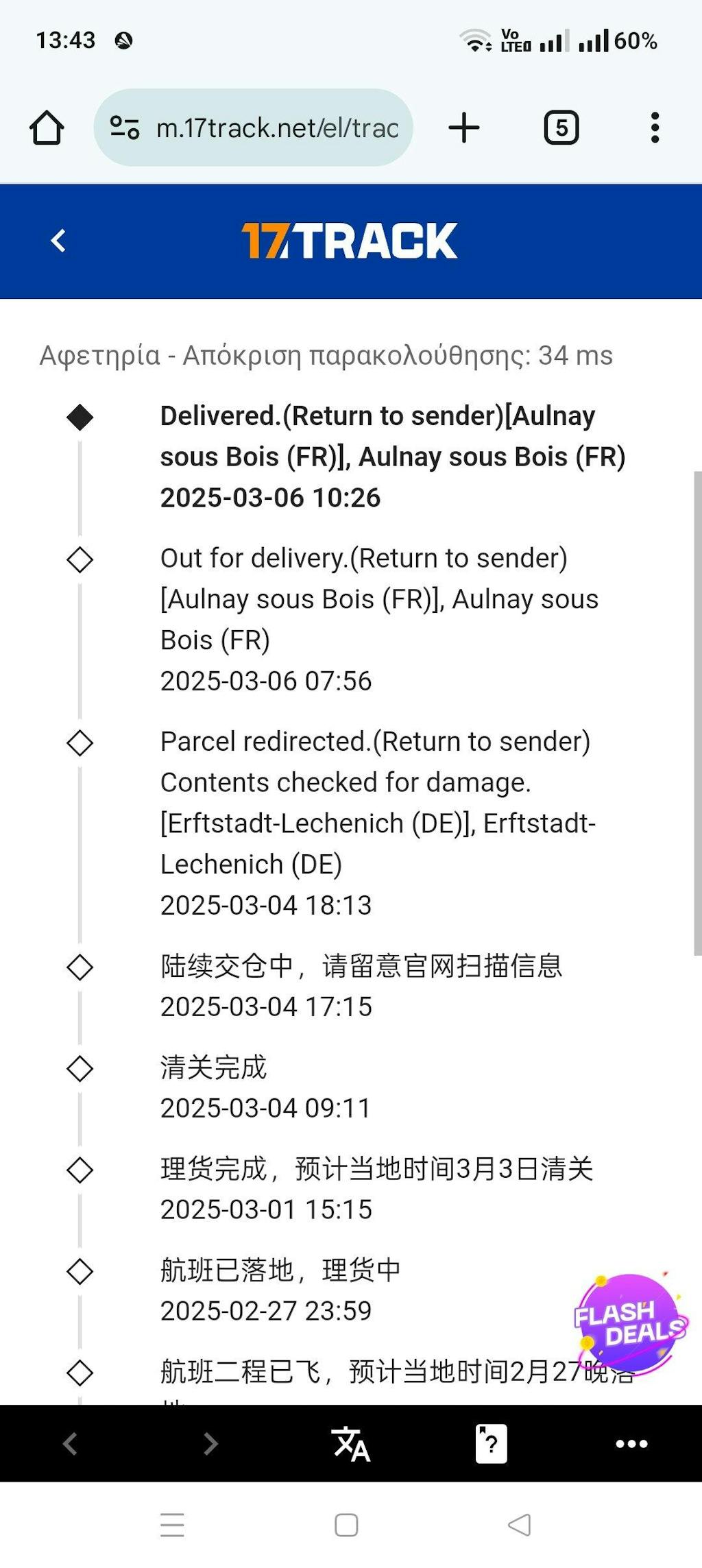 At 4/03/2025 received a message from 17track service that my parcel is being redirected and returning to seller. At 6/03/2025 the seller received my parcel and I asked them what will happen from now on. Today, 10/03/2025 they still say that they wait for the logistics service to reply.