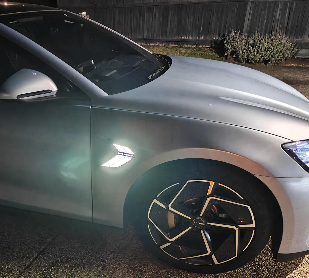 Feux de jour blanc et clignotant actif jaune.