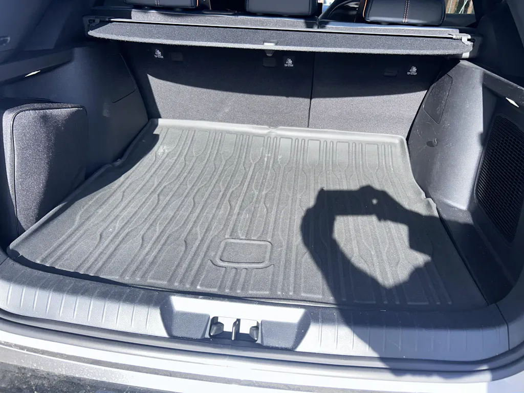 Before installing the trunk mat, you need to lift the partition underneath the trunk mat so that it aligns with the rear seats. This adjustment ensures the trunk mat fits properly. Once this is done, the trunk mat can be installed correctly.