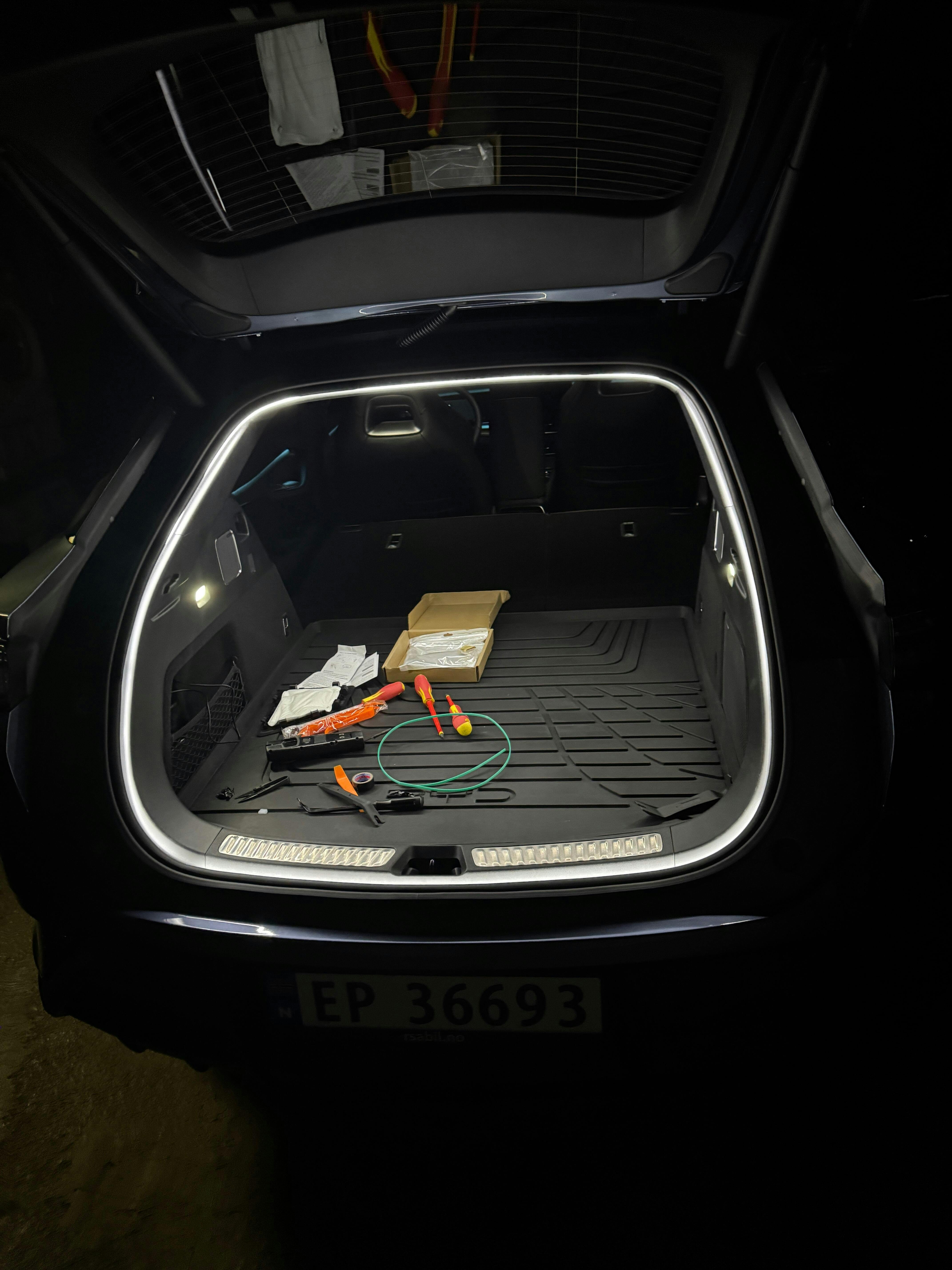 Even so the light strip was about 15 cm too short to make a continuous light all around the trunk opening.