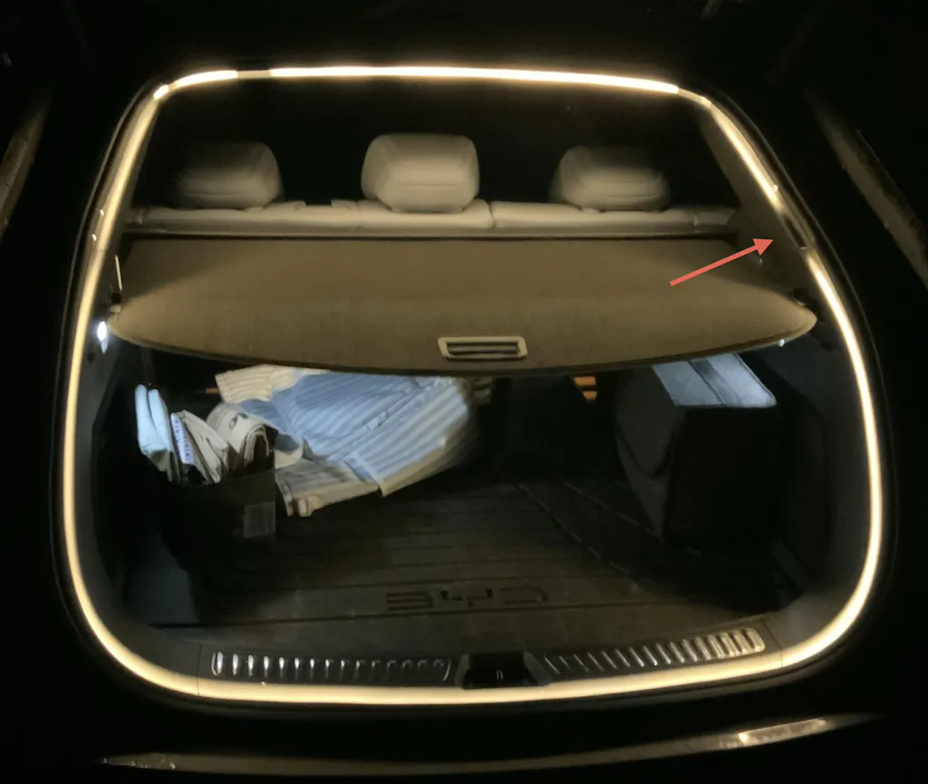 Bande LED étanche pour coffre BYD Seal, Sealion 6/Seal U, Atto 3, Tang, Han. Allumage automatique à l'ouverture du coffre. Extinction automatique à la fermeture du coffre.