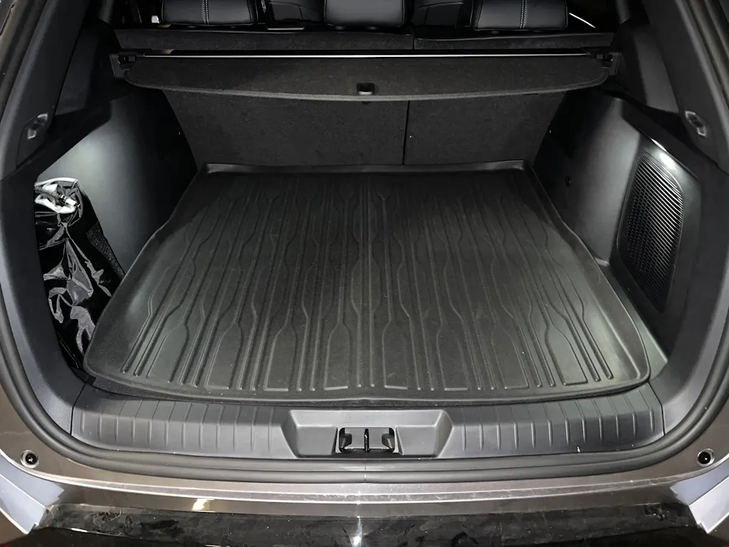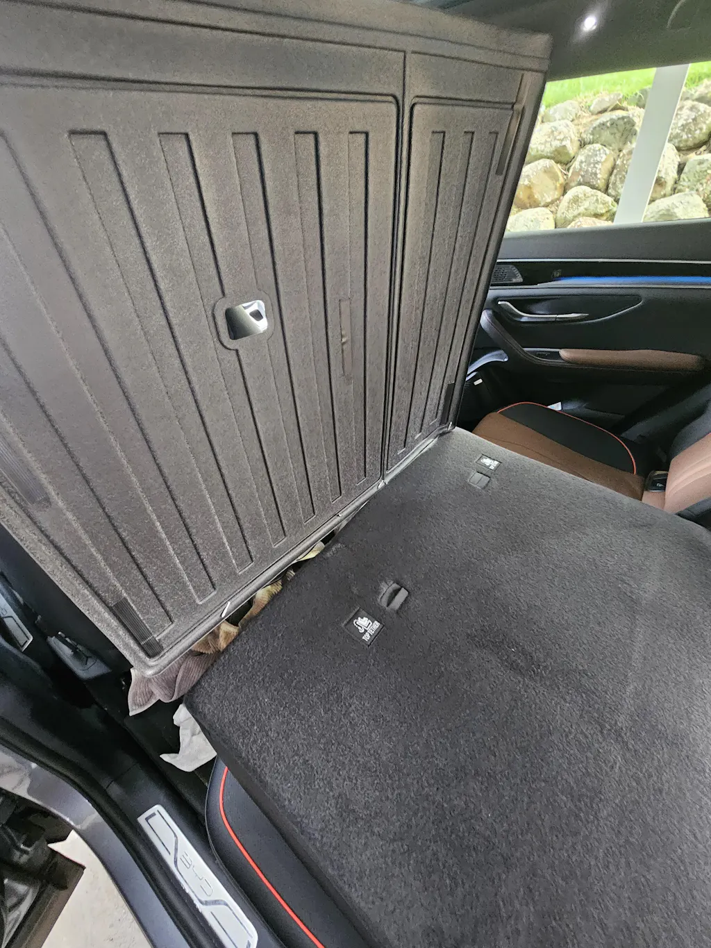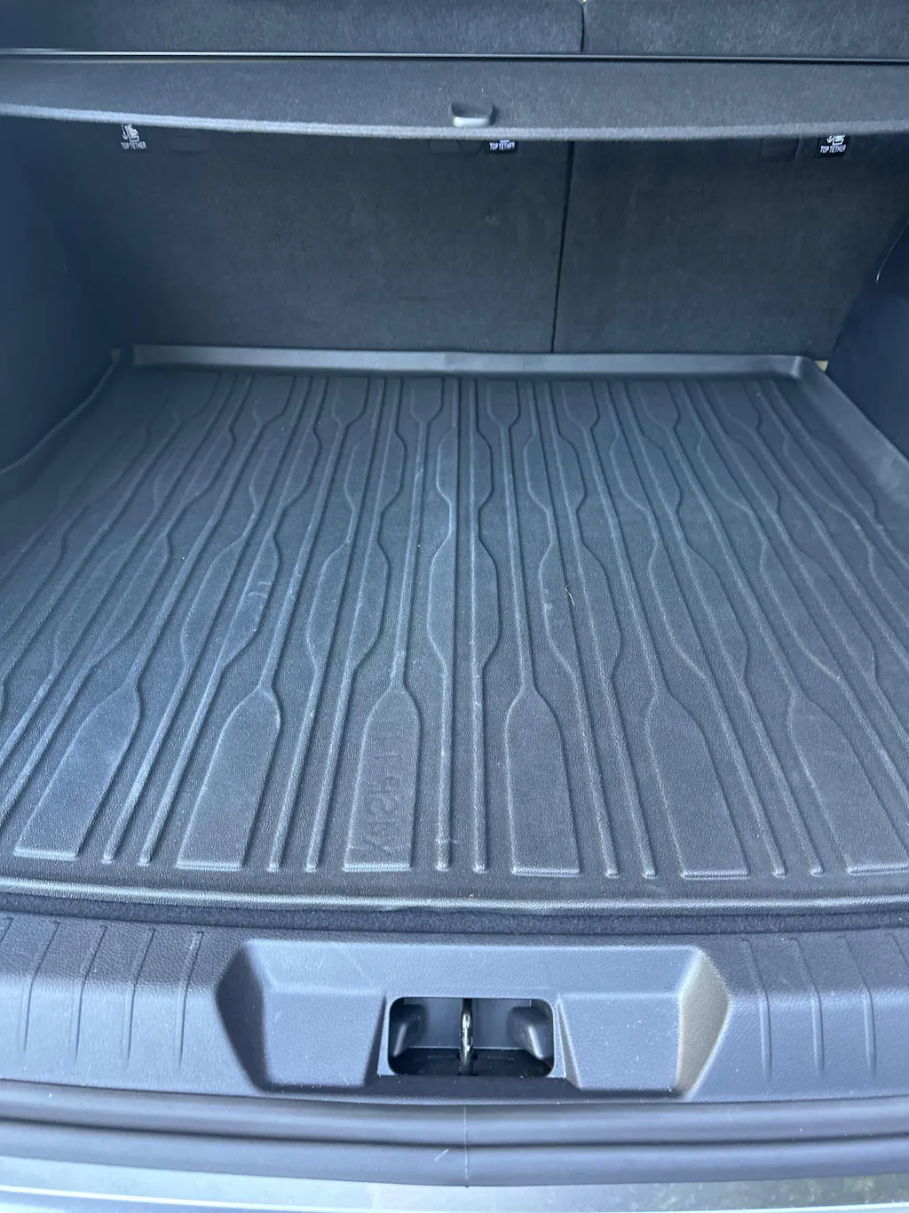 Before installing the trunk mat, you need to lift the partition underneath the trunk mat so that it aligns with the rear seats. This adjustment ensures the trunk mat fits properly. Once this is done, the trunk mat can be installed correctly.